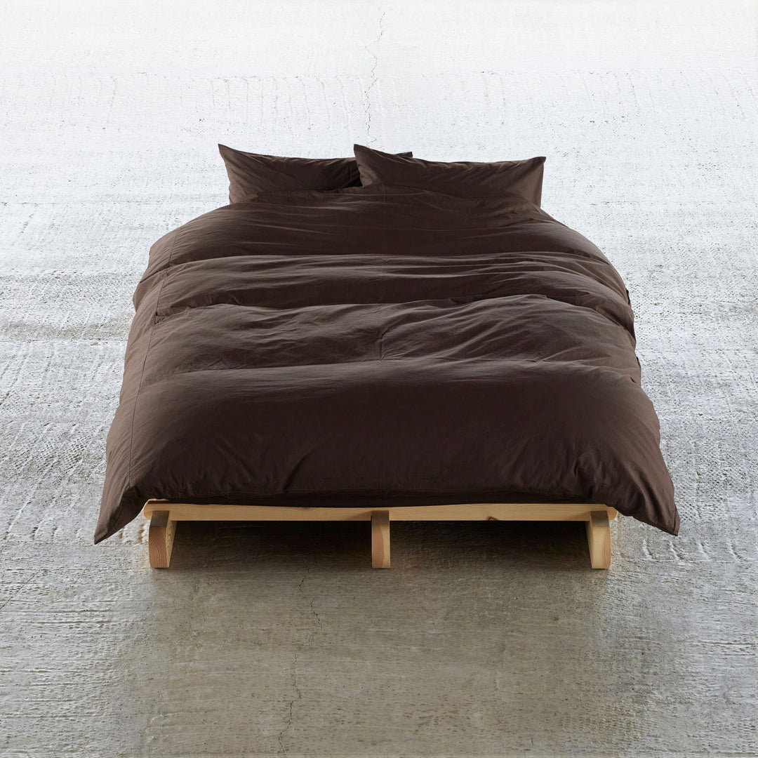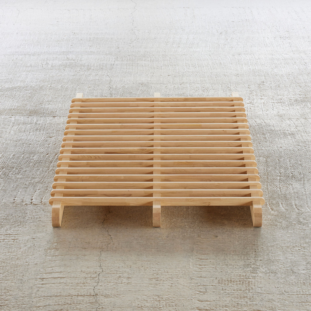 ありのままの自分に戻れる、「巣」のようなベッド。金具を使わず、組み立てやすさを重視したオリジナルベッドです。既視感のないデザインを、用途の限られた木材のアップサイクルによって形にしました。自分自身が心地よく過ごせる空間を、静かに包み込む「巣」のように。