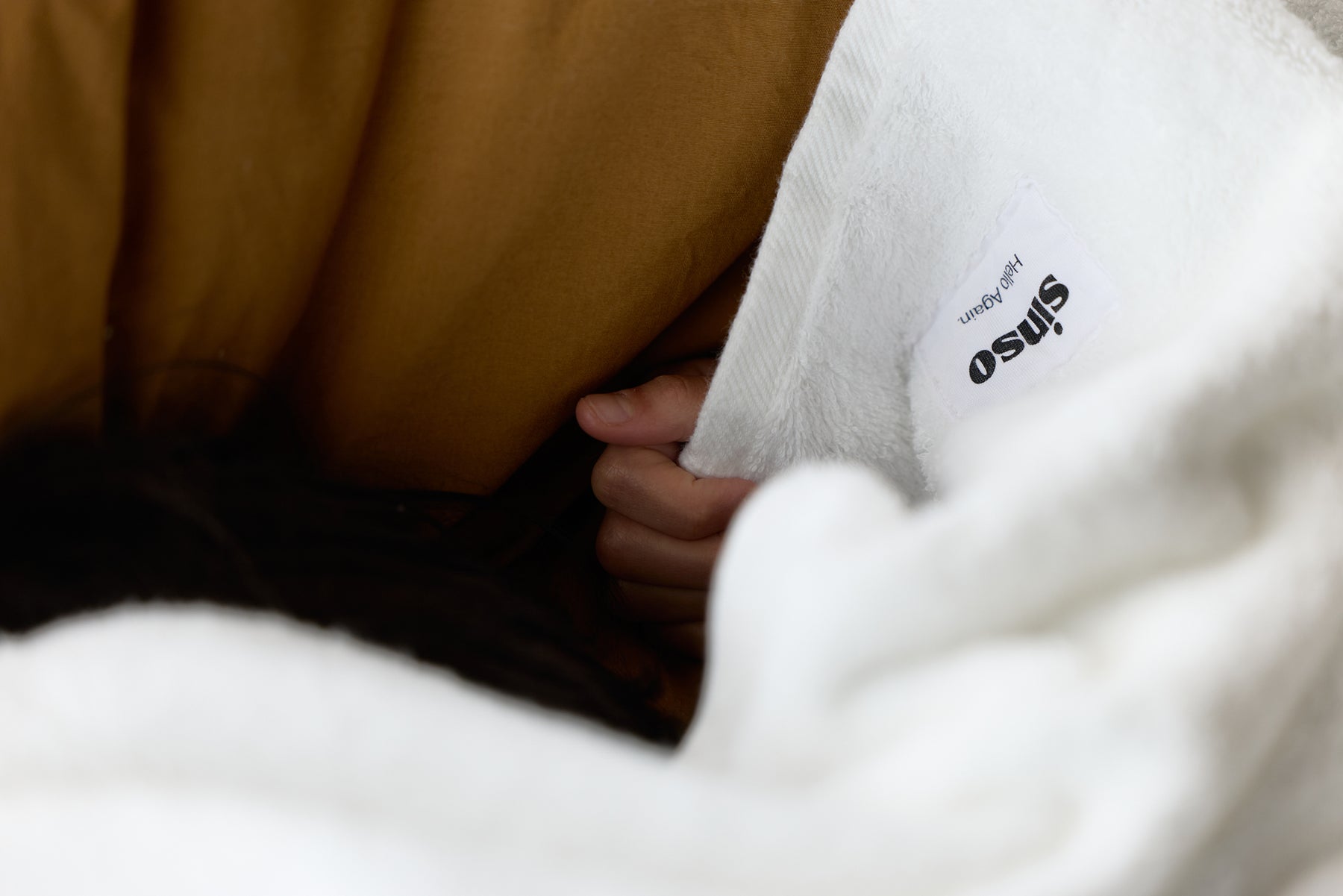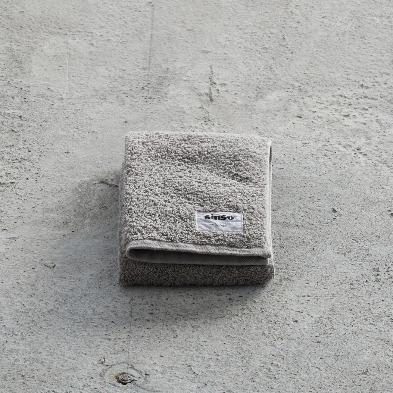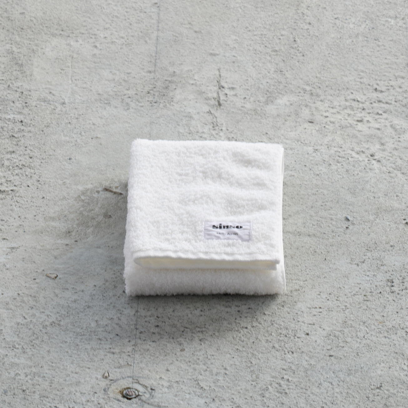 愛媛県 今治産地で創業60年以上。世界の綿を見極め、素材を活かす製法で上質なタオルを織り続ける渡辺パイル織物。sinsoの世界観に合わせた色別注から開発が始まり、糸・撚り・染色などすべての工程に吟味を重ね、重厚さと柔らかさを追求しました。